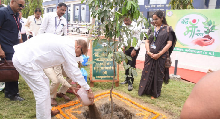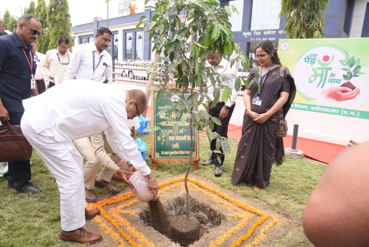 Governor Shri Ramen Deka planted a Maulshree sapling in the name of his mother Late Smt. Champavati Deka under the ‘Ek Ped Maa Ke Naam’ campaign in the premises of the joint district office during his stay in Balodabazar today. During this, he paid tribute to the statue of Chhattisgarh Mahtari, Mahatma Gandhi, martyr Veer Narayan Singh and constitution maker Baba Saheb Bhim Rao Ambedkar in the premises and bowed to them. During this, Governor Shri Deka, while emphasizing on environmental protection, also appealed to all the people to plant as many trees as possible.