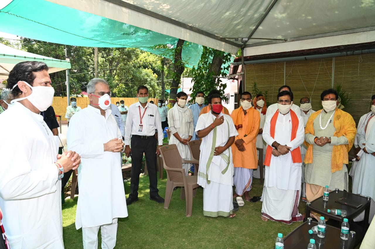 31 PANDITS expressed gratitude to Chief Minister Bhupesh Baghel for his initiative to initiate worship in the religious places with physical distancing and chanting