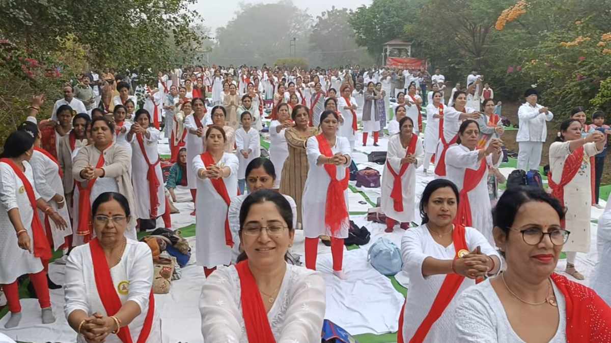 Raipur . Yoga practitioners of Bhartiya Yoga Sansthan, Raipur and Dhamtari celebrated Mahila Yoga Shakti Diwas with great pomp and enthusiasm along with about 500 yoga practitioners at Gangrel Dam today. The program started with Pranayam, Dhyan and Asanas, which were led by Rajesh Aggarwal, Mukesh Soni, Vandana Ahuja and Rajesh Daga. An excellent demonstration of yoga asanas was done by