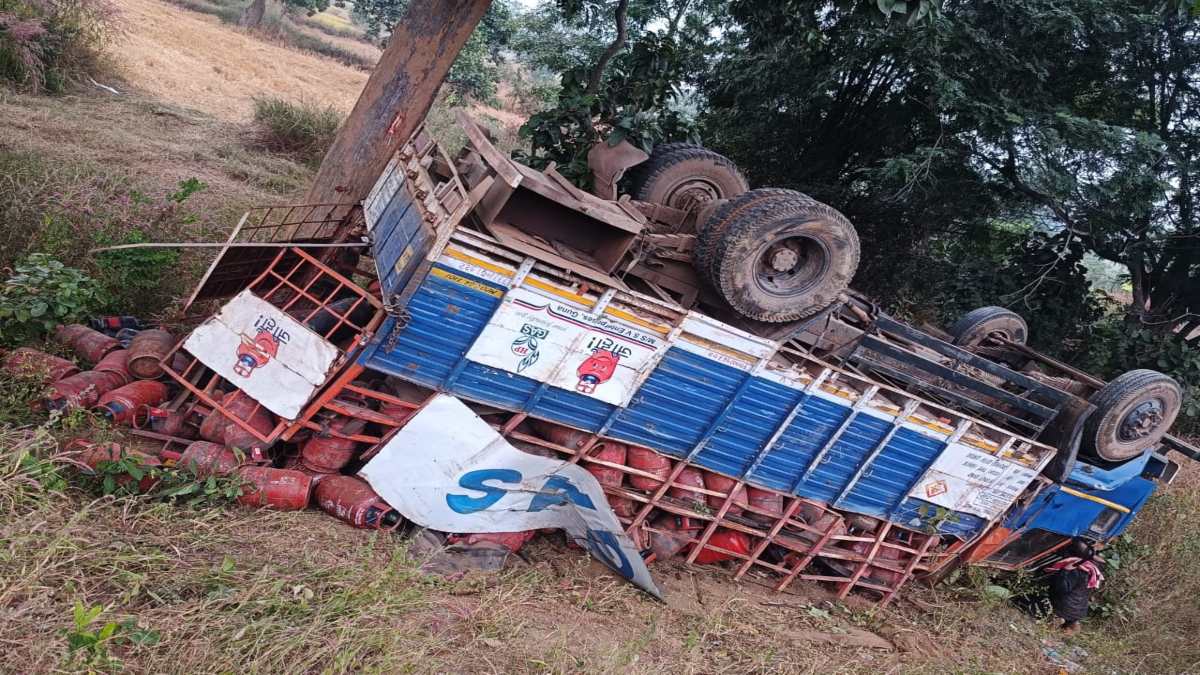 , Mahasamund. A speeding truck loaded with Hindustan Petroleum (HP) gas cylinders went out of control and overturned on the side of the road near Darri stop on National Highway 53 in the district. Fortunately, there was no explosion during this time and no one was hit by tLet us tell you that after getting the information of the accident, Patewa police reached the spot and informed the fire brigade about the incident as a precaution and started rescue work on the spot. According to the initial information, the truck had left from Mandir Hasaud in the capital Raipur to go to Sambalpur in Odisha. During this time this accident happened.he truck. However, the truck driver suffeLet us tell you that after getting the information of the accident, Patewa police reached the spot and informed the fire brigade about the incidenthe fire brigade about the incident as a precaution and started rescue work on the spot. According to the initial information, the truck had left from Mandir Hasaud in the capital Raipur to go to Sambalpur in Odisha. During this time this accident happened.t as ared minor injuries.