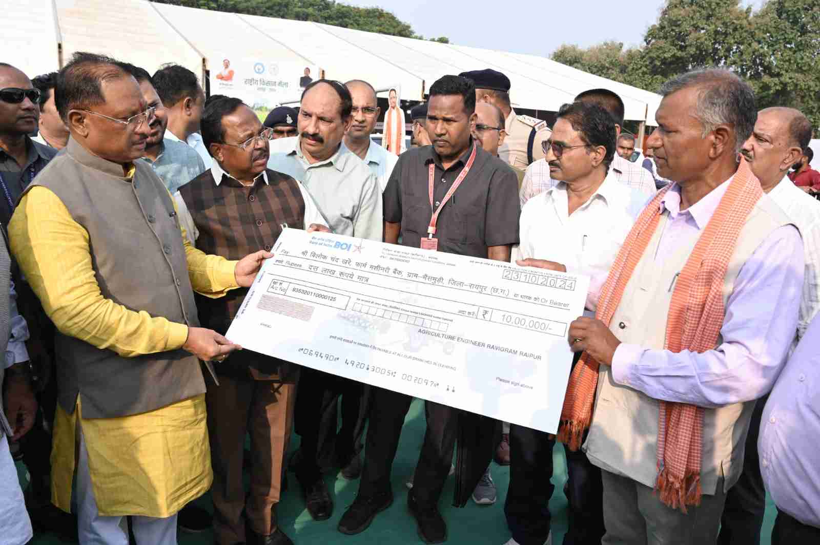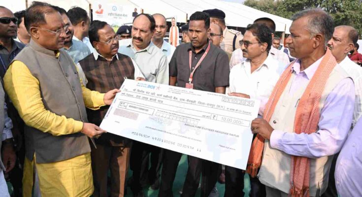 Raipur. Farmers have an important contribution in building a developed India. Along with modernizing agriculture, increasing the income of farmers is the priority of the Sai government. Chief Minister Vishnu Dev Sai said this while addressing the inauguration ceremony of the National Agriculture Fair and Exhibition organized at the Indira Gandhi Agricultural University campus in the capital today. He called upon the farmers to join the production of fisheries, animal husbandry and horticultural crops along with paddy cultivation to increase their income. On this occasion, CM Sai also gave a check of grant amount to the young entrepreneurs.