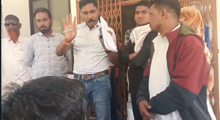 y protested in front of the tehsil office.