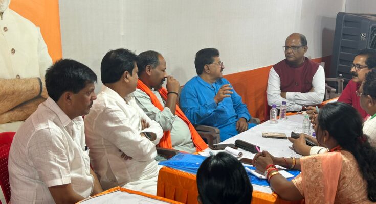 BJP General Secretary Organization of Chhattisgarh Pawan Sai held a meeting of Shakti Kendra in-charge, convener and co-convenor of Sukhdev Nagar Mandal of Ranchi Vidhan Sabha under Ranchi Lok Sabha in Ranchi and made an election plan for all 100 polling stations. During this, he said that BJP workers work with utmost hard work. Even in the scorching heat, he interacts with people from door to door. The result of the hard work of the godlike and dedicated workers of BJP will be seen in the form of huge majority for BJP on 4th June. For this, everyone will have to concentrate on the goal like Arjun. He said that with the determination of a developed India, the voting percentage should increase and in this direction all the workers have to work on priority. It is noteworthy that many MPs, MLAs and officials and workers of Chhattisgarh are currently busy campaigning for the Lok Sabha elections in Jharkhand. In this meeting, State General Secretary Sanjay Srivastava, MLA Prabodh Minj, Krishna Rai, Omprakash Sinha, Kamalbhan Singh, Raimuni Bhagat, Bharat Singh and many senior officials and workers were present.