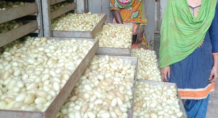 Dantewada, 21 October 2021:In tribal dominated areas like Dantewada, good employment opportunities are being provided to the people. By taking advantage of the silkworm rearing schemes of the Silk Department, the villagers of the district are making it a means of additional income for themselves. In the Silk Center Chitalanka under the Department of Silk, the women of the Women’s Sericulture Self Help Group are currently doing the work of mulberry silkworm rearing. From the hatching of eggs from the healthy egg groups provided by the department to the harvesting of cosaphal, the work is done by the women of the groups under the supervision of the employees of the department. The chemicals and equipment used during worm rearing are supplied by the department, Women get economic income by selling the cocoons produced after worm rearing to the Cocoon Bank and Silk Department. Till now, women of Self Help Groups have received a total income of 31 thousand 5 hundred 49 from this work. There are 7 women working in this group who are earning a profit of Rs 4-5 thousand. At present, the women of the group are doing worm rearing work of 350 mulberry healthy ovum groups, the work of cocoon production has also started. The women of the group working in the silk center Chitalanka are hoping for good profit by selling the coco produced, have been doing the work of mulberry silk worm rearing for the past many years and these women are satisfied with the profit they get. Fulfilling her domestic needs with the income earned from worm rearing, she is raising the necessary facilities for the family. The work of cocoon production has also started. The women of the group working in the silk center Chitalanka are hoping for good profit by selling the coco produced, have been doing the work of mulberry silk worm rearing for the past several years and these women are satisfied with the profit they get. Fulfilling her domestic needs with the income earned from worm rearing, she is raising the necessary facilities for the family. The work of cocoon production has also started. The women of the group working in the silk center Chitalanka are hoping for good profit by selling the coco produced, have been doing the work of mulberry silk worm rearing for the past many years and these women are satisfied with the profit they get. Fulfilling her domestic needs with the income earned from worm rearing, she is raising the necessary facilities for the family.