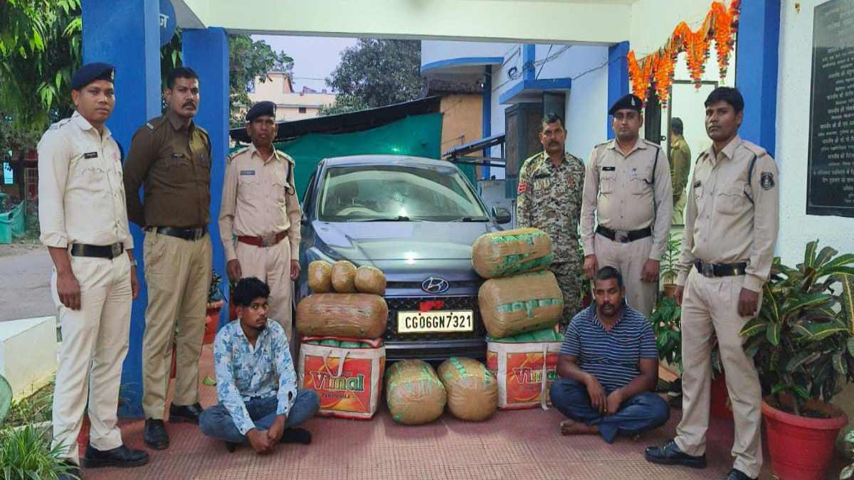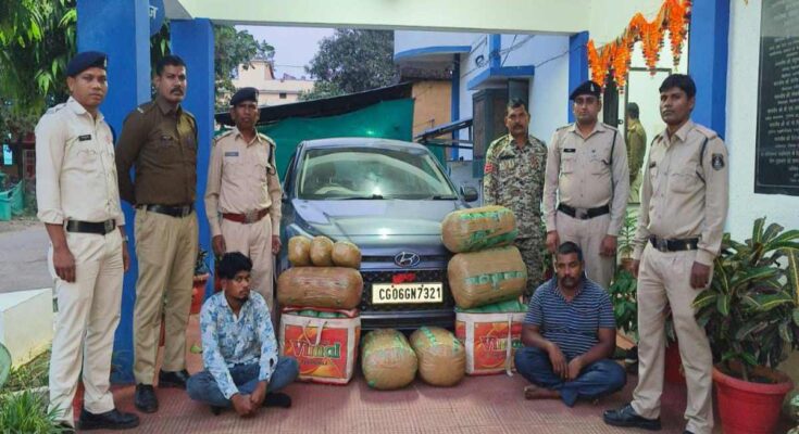 Rajim. Rajim police has got a big success against ganja smuggling. Two interstate smugglers have been arrested with 92 kg of ganja. Police blocked the main road leading to Rajim from Chhura Road, Chaubebandha Road, and stopped the suspicious vehicle and searched it. During this, when the trunk of the car was opened, the police were also shocked. A large amount of ganja wrapped in brown cello tape was found in the trAccording to the information, the police set up a blockade near a dhaba on the main road from Chhura Road to Rajim and stopped a Hyundai car and searched it. During this, the people in the car told that they were from Odisha. During the search, 92 kg of ganja wrapped in brown cello tape was recovered from the trunk of the car, whose total value is estimated to be Rs 9 lakh. The police have seized the car, 2 mobile phones along with the drugs. Both the accused have been arrested.unk.