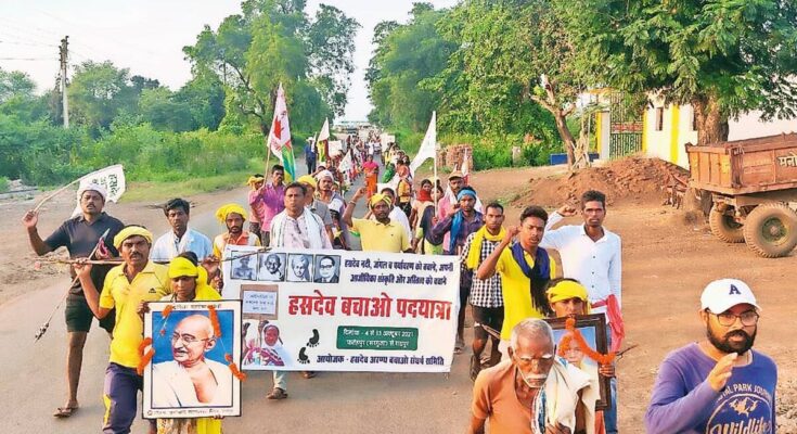 The protesters marched from Ambikapur district to reach Raipur on Wednesday, covering over 300 kms in ten days, to register their protest against what they called “illegal” land acquisition.