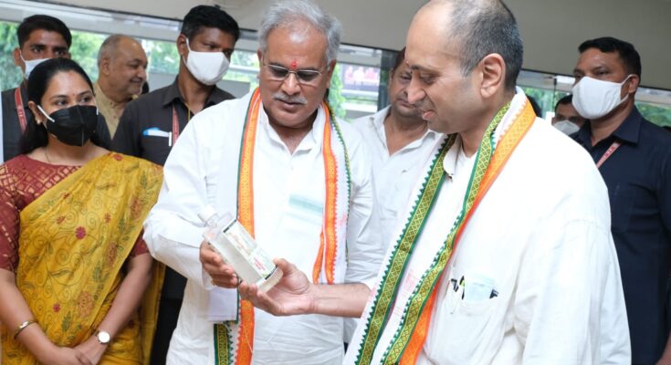 Raipur 19 October 2021 : Not only minor forest produce is being collected in Chhattisgarh, but many types of herbal medicines and products are being prepared by processing them. These works are also providing employment to youth and women self-help groups. Chief Minister Shri Bhupesh Baghel and Shri Sachin Rao today inspected the herbal product sales center Sanjeevani at GE Road near the Collectorate of Raipur. Learned about marketing and sale of about 120 types of herbal products prepared from processing units in these centres.