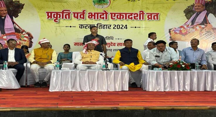 Raipur. Chief Minister Vishnudev Sai participated in Karma Tihar. He beat the Mandar on the stage and performed the traditional Karma dance. The program took place at Indira Gandhi Agricultural University. On this occasion, CM Sai said that it is a matter of good fortune that the celebration is being started in the capital Raipur by our Kanwar community. The society is starting a good tradition. We should not forget our tradition and culture. Our sons and daughters move ahead after getting education and forget our tradition and culture. We all have to remember that we should not forget our tradition and culture.