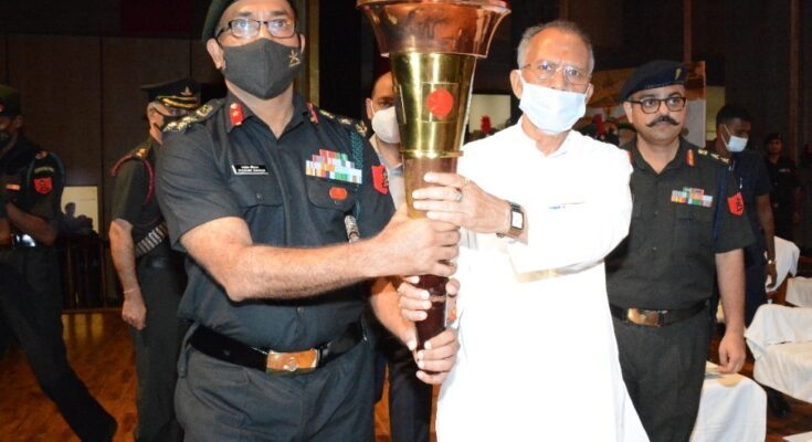 Raipur, 16 October 2021 : The Golden Vijay Mashal Yatra has been taken out to show respect to the Indian soldiers involved in the war against Pakistan in the Indo-Pakistani War of 1971 and to instil a sense of pride among the citizens. In this sequence, on reaching Raipur, Chhattisgarh, after the golden victory torch march of the soldiers, they were honored at the Science College Auditorium in the capital. More than 100 soldiers of Chhattisgarh also took part in this war.