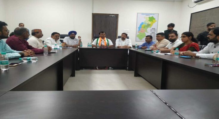 Raipur. State Congress President Deepak Baij and co-in-charge Vijay Jangid took two important meetings at the State Congress Headquarters Rajiv Bhawan. The first meeting was held with the spokespersons of the state Congress and the second meeting was held with the district in-charges and officials. In the meeting, State Congress President Deepak Baij said that in this election we have to go among the public on two important issues. Firstly, Modi government’s 10 years of failure and broken promises and secondly, Congress has given 5 guarantees for every section of the public, we have to raise them among the public from every platform.