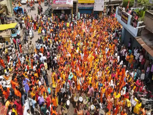 Dance troupes from Kalahandi of Odisha also gave their presentation in this Kanwar Yatra. A large number of people gathered to see it. He was seen capturing the dance of these artists in his cameras. However, during this time the situation of jam was also created at many places. Traffic and security arrangements are not visible. Cars and other vehicles were also crossing from where the Kanwar Yatra was passing. At the same time, long queues of vehicles were also seen behind the yatra.