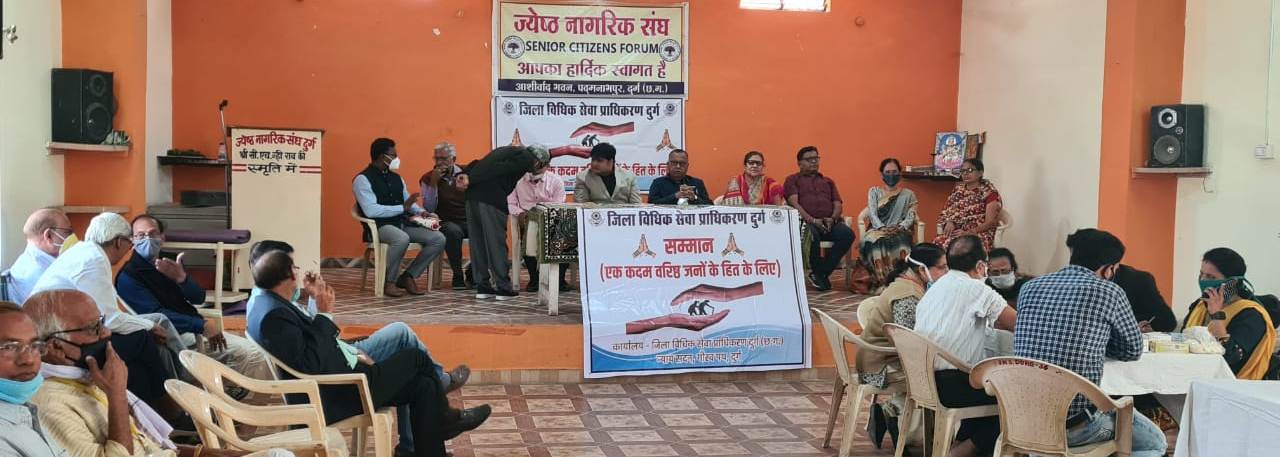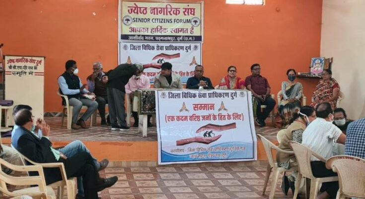 Durg 07 February 2021. Special campaign ” Samman ” ( one step) for the purpose of providing legal advice and assistance , schemes of government , health services to senior citizens under the direction and guidance of Rajesh Srivastava District and Sessions Judge / Chairman, District Legal Services Authority Durg For the benefit of senior citizens) inauguration of Senior Senior Citizens Association M.I.G. Market was done in Padmanabhapur. In the inaugural program of the campaign ” Samman ” , Secretary Mr. Rahul Sharma , Judge Gan , Dr. of the Medical Department. Devagna Chandrakar , Lalchand Jain, President of Social Welfare Department, Durg and President of Senior Senior Citizen Association was present along with his officials. In the inaugural program of the campaign, Mr. Rahul Sharma, Secretary, District Legal Services Authority, Durg said that Nalsa (Senior) in relation to fostering the direction of fulfilling the purpose of providing free treatment and free medical and government benefits to senior citizens. Legal Services for Citizens) Under the scheme 2016 , this campaign ” Samman ” for wider publicity of schemes related to the rights and welfare of senior citizens.The idea of running it was conceived by Mr. Rajesh Srivastava District and Sessions Judge / Chairman. To fulfill these objectives, this program was organized for the honor and welfare of senior citizens today. By organizing this program, any senior citizen can put their legal / legal problems on this table. Many senior citizens / parents are angry with their children, they do not take care of them, they are being seen in terms of neglect at the place of honor in the family. They are also not being given medical facilities regularly by their children. On the contrary, children are using their property happily with their children in their daily lives. Secretary Mr. Rahul Sharma campaign ” Honor “It was informed in the awareness program that through this awareness program, the panel advocate will be provided free of charge on the application received for legal assistance. Also, if there is any inconvenience or difficulty in getting senior citizens as per the rules of the government, then by coordinating with the government / social welfare department, they can be benefited. If a family problem of a senior citizen is found to be in front , a full effort will be made to settle the family dispute through ” arbitration ” before taking it to court . Also, the senior citizens who have family dispute cases pending in the court or in the family court, should be given 10 April 2021Will be identified in the Lok Adalat held and their cases will also be pre-arranged in Lok Adalat to be resolved through conciliation. In the Lok Adalat, only the eligible cases can be placed for reconciliation. Apart from this, civil (property dispute) cases of senior citizens can also be resolved in Lok Adalat. Hearing machine wheelchairs and walking stickers were provided to the needy by the Social Welfare Department, while health tests were conducted by the Health Department. In the coming days, the said campaign will be carried out in all senior citizens associations and various wards. Campaign ” to be present senior senior citizen association launched program honors.