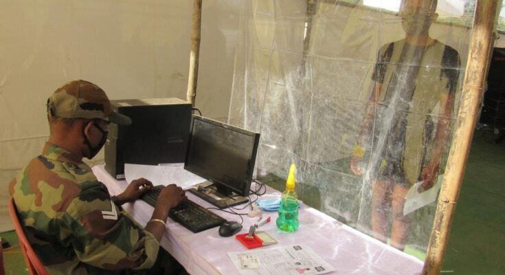 Durg 05 March 2021. 4600 candidates were present in the ongoing army recruitment rally in the district. Around 2770 people qualified for the pre-height on this occasion. Also around 320 candidates qualified in the race. On this occasion, Director of Army Recruitment, Army Medal, Colonel Shri S. Ramesh’s recruitment rally took place in monitoring. Collector Dr. Sarveshwar Narendra Bhure also reached the recruitment site to inspect the facilities. He instructed the officers to continuously monitor the facilities required for the candidates. He said that helpline numbers have been made for the convenience of the candidates. In these helpline numbers, the immediate help of those who call for help should be ensured. For the candidates who have been provided accommodation. Cleanliness facilities should be kept there. He also gave instructions to take care of the convenience of food and drink. During this, SDM Mr. Khemlal Verma and Deputy Director Manpower Planning Mr. Rajkumar Kurre, Major Mr. Suleman Hussain were also present. It is noteworthy that during the army recruitment, the participants were initially kept in the marshalling area. Then after this he was taken to the recruitment site. It is noteworthy that for the convenience of the candidates, flakes have been installed at various places in the city and information has been given about the stay of the candidates through social media and various mediums. Mr. Kurre informed that the duty of officers has been imposed in the control room, who are constantly giving the necessary information to the candidates.