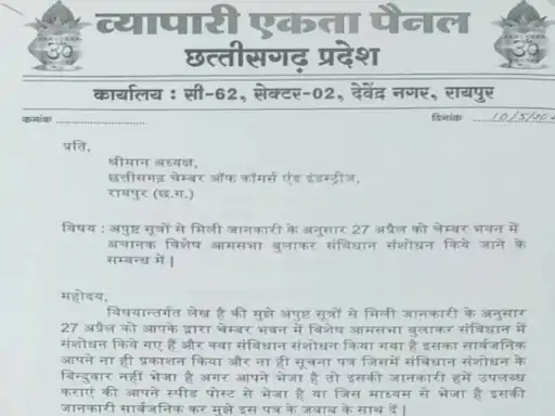 State Executive President of Chamber of Commerce, Vikram Singhdev said in this matter that the allegations are baseless, he should not say such things. He knows all the rules. A general meeting was held on 27 January, businessmen from all over the state had come. CM Vishnudev Sai had come, proposals were made there and then as per the rules, a meeting was called in the Chamber office on 27th April. This information was given to every businessman of the entire state through post and media.