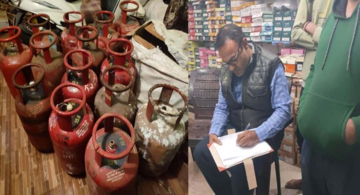 Balodabazar. On the instructions of Collector Chandan Kumar, the Food Department at the District Headquarters has conducted raids on illegal sale and refilling of gas cylinders. During this time, about 100 domestic and commercial use cylinders and gas refilling items were seized from roadside houses in the city and village Chhuiha of Balodabazar. Keeping in mind all the rules and regulations, roadside general stores and shops selling shoes and slippers were seized. Illegal sale of gas cylinders was being done by keeping them openly on the road under cover. On receiving the information, the Food Department took action today and seized about 21 filled and empty cylinders from both the shops. Action was taken on the information that illegal cylinders were kept in a house located in Balodabazar Bhatapara Road. Where 76 cylinders of HP and Indane Company were found filled and empty. Besides this, new small gas cylinders and gas refilling machine have also been found. Looking at the situation here, it seemed that refilling work was being done for many years and the cylinders were being sold after refilling. The Food Department had to face a lot of difficulties in raiding the house located in Chhuiha village of Balodabazar Bhatapara Road. When the shutter was opened, the officers were left in tears. Here, materials, machines and empty gas cylinders were found to fill gas from big gas cylinders to small ones on a large scale, disregarding the rules and regulations. After which the vacant department staff including the district vacant officer has started taking action.