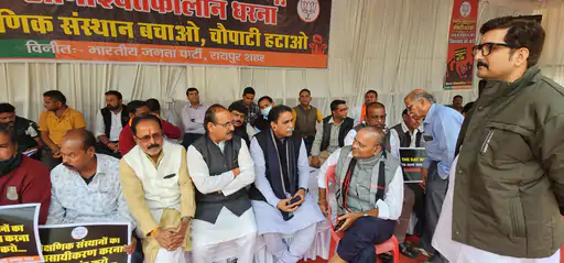 Former minister slept on the roadside: Moonat spent the night on the footpath, in the morning the police came to remove him but did not agree. Former minister Ajay Chandrakar supported the movement by reaching the pandal.