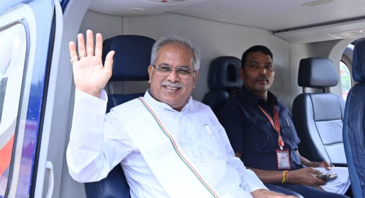 Chief Minister Mr. Bhupesh Baghel on Sunday reached village Pondi falling under Baikunthpur Assembly Constituency of Koriya district as a part of his meet and greet programme. A large number of people reached the helipad to give a warm welcome to the Chief Minister. Parliamentary Secretary Mrs. Ambika Singh Deo was also present on the occasion.Soon after Mr. Baghel stepped down from the helicopter, a young lad Sameer, wearing a face mask and T-shirt with Chief Minister’s picture in it welcomed Mr. Baghel at village Pondi. The Chief Minister asked the boy his name and came out of the helipad with him.