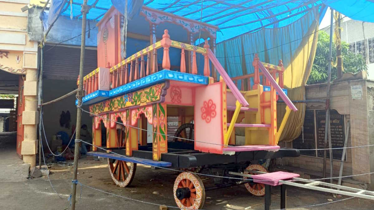 Raipur. Preparations for the Rath Yatra have intensified at the Lord Jagannath temple located in the old colony of Raipur. After 40 years, the chariot of Lord Jagannath is being replaced, whose painting and carving work is being done by Muslim artisan Habib Khan and his son Riyaz KhanRaipur. Preparations for the Rath Yatra have intensified at the Lord Jagannath temple located in the old colony of Raipur. After 40 years, the chariot of Lord Jagannath is being replaced, whose painting and carving work is being done by Muslim artisan Habib Khan and his son Riyaz Khan