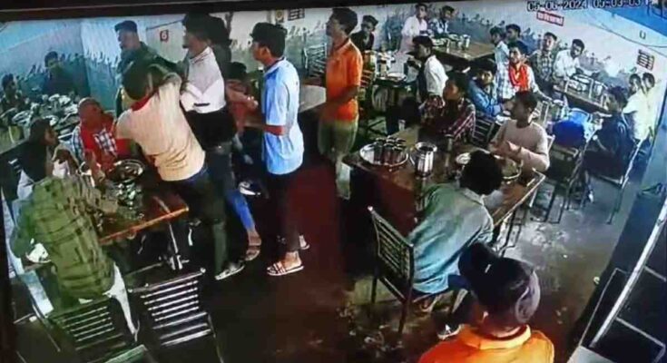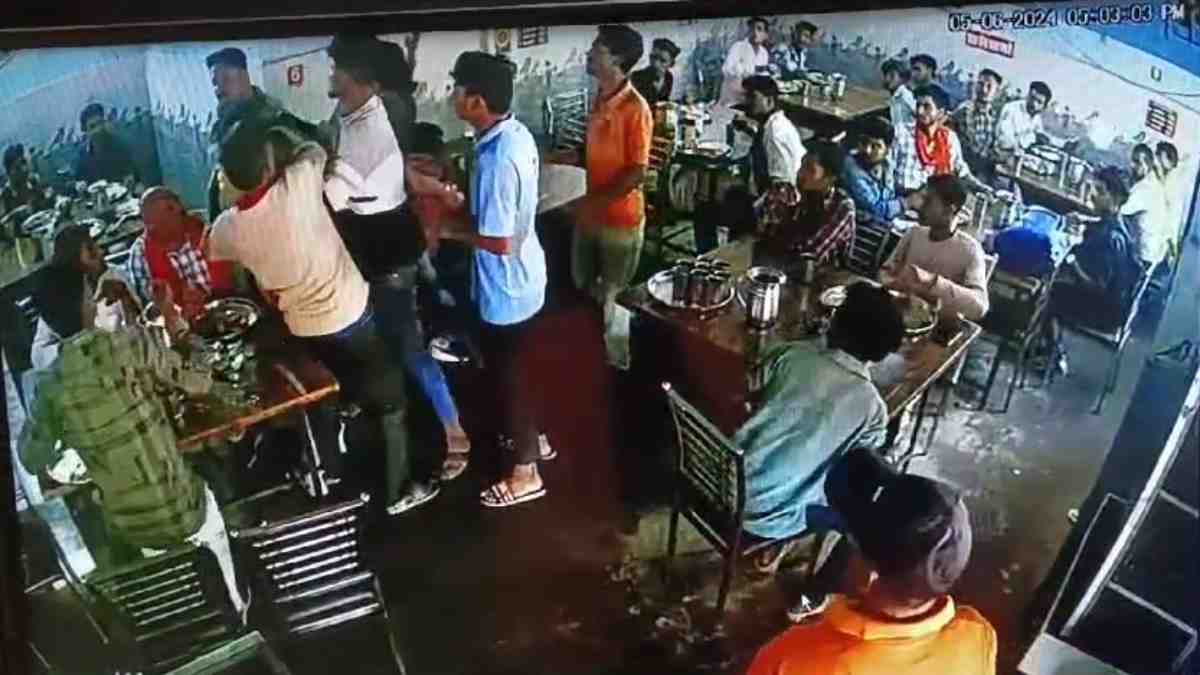 Kawardha. The employees of Devangan Chicken Center located at the city bus stand beat up a young man who had gone to eat food. CCTV footage of this has also surfaced, in which the hooliganism of the employees of the chicken center is clearly visible.