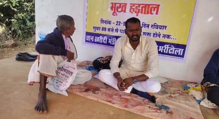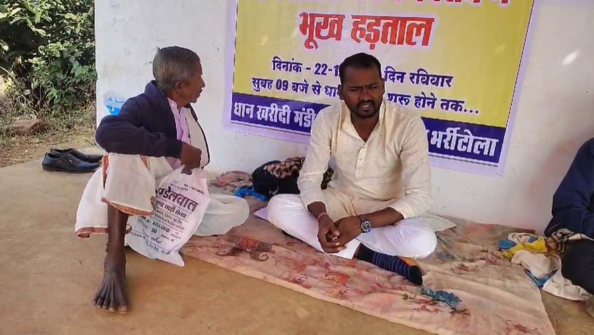 The youth Devanand Kaushik has been on a hunger strike in the local paddy procurement centre premises since Sunday. The youth has announced that he will continue his hunger strike until paddy procurement starts in Bharritola committee. On getting information about the hunger strike by the youth Devanand Kaushik, farmers from various villages of the area are not only reaching the strike site to meet Devanand but are also extending their support to him in this strike.