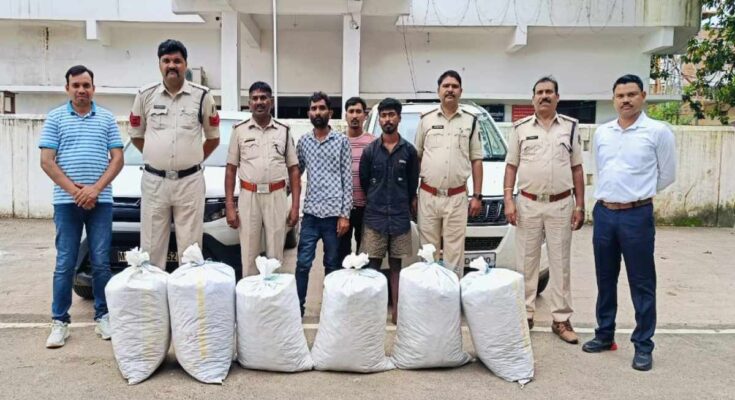 , Gaurela-Pendra-Marwahi. The police of Gaurela-Pendra-Marwahi district of Chhattisgarh has achieved a major success by cracking down on drug smuggling. In a joint operation of Cyber Cell and Gaurela Police, three interstate smugglers have been arrested with 1.05 quintals of ganja. In this operation, two vehicles Mahindra XUV 500 and New Maruti Brezza used for smuggling have also been seized. The cost of the seized ganja and vehicles is Rs 48 lakh 1630.