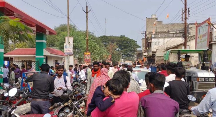 Shakti. District level public problem solving camp is being organized in the city. This camp has been organized in the premises of Swami Atmanand School located in Railway Station Road, Sakti. In which camps of all departments have been organized. People’s problems are being heard here. But due to the negligence of the officials, instead of solving their problems, this camp has become a problem for the people. Actually, the camp is being organized inside the city. In which thousands of people have arrived from all over the district. Due to which many Sakti routes have been completely blocked. Sakti Railway Station Road is completely blocked. Vehicles have been parked on both sides of the road. A crowd of thousands of people are reaching the camp simultaneously through this road. Due to which the road is completely jammed. Many people who had to catch the train could not reach the station on time and missed their train.