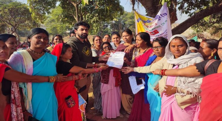 Balodabazar. On the call of the State Health Mitanin Association, the District Mitanin Association is on a ‘work stop-pen stop’ strike from December 13 for its two-point demands. Today in Balodabazar, the Mitanins held a district-level demonstration and handed over a memorandum to the Deputy Tehsildar Akshay Tiwari in the name of Chief Minister Vishnu Dev Sai to fulfill their two-point demands.
