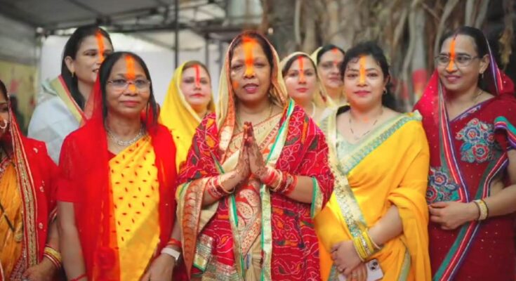 Raipur. Vat Savitri Puja was performed with devotion and reverence in the capital on Thursday. Married women worshiped the Vat tree and prayed for the long life of their husbands. On this occasion, Kaushalya Sai, wife of CM Vishnudev Sai, performed Vat Savitri Puja with married women in the CM House. Kaushalya Sai wished all the women on the festival.
