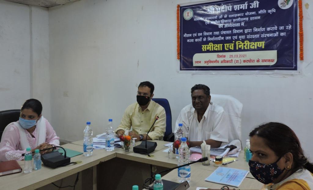 Mr. Sharma also inspected Adarsh Gowthan Mahora, during this time, he started doing poultry farming , thread making , incense sticks ,He encouraged and encouraged the women of the self-help group producing two-leaf-building mushrooms. He inspected the MNREGA-built structure , stop dams , lugeboulder check dams, etc. under Narva construction in remote forested area Gram Panchayat Kesalpur, and encouraged the technical assistant Ganga Kanwar for the side selection and quality work of the luzbolder check dams. . On this occasion, Mr. Kundan Kumar, Chief Executive Officer, District Panchayat Korba , Mrs. Priyanka Pandey , Forest Division Officer Korba Shama Farooqui , Forest Division Officer Katghora and all district level department heads were present.