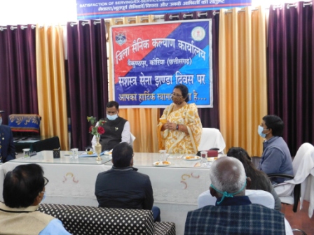 Korea 07 December 2020. Like every year, today, on 07 December, the Armed Forces Flag Day was celebrated in the District Sainik Welfare Office at Collectorate. Ex-servicemen were also present on the occasion in the presence of Parliamentary Secretary and Baikunthpur MLA Smt. Ambika Singhdev and Collector Shri SN Rathore. In the program he shared memories of his days of service to the country as a soldier.