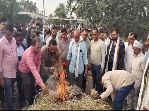 Nandkumar Baghel, father of former Chhattisgarh Chief Minister Bhupesh Baghel, was cremated on Wednesday in his home village Kuruddih. Younger son Hitesh Baghel lit the funeral pyre of his father. A large number of people were present during the last rites on the banks of the village pond. Nandkumar Baghel died on 8 January.
