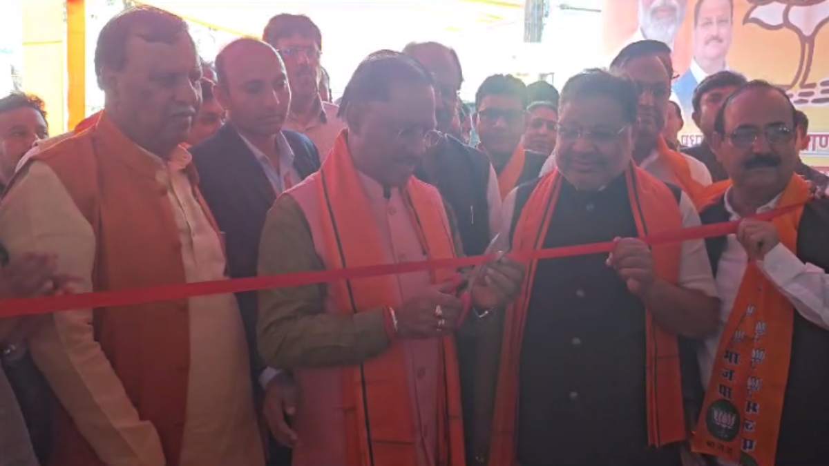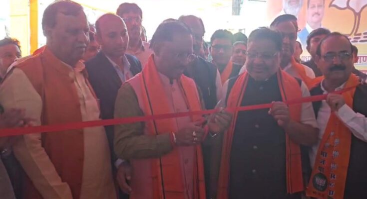Raipur. BJP today inaugurated the central office in Raipur, Durg and Mahasamund Lok Sabha constituencies. CM Vishnudev Sai inaugurated BJP’s Raipur central office near Raj Bhavan in Raipur. Raipur Lok Sabha in-charge Sandeep Sharma, MP Sunil Soni, Minister Brijmohan Aggarwal, Minister Tank Ram Verma along with MLAs Khushwant Saheb, Motilal Sahu, Purandar Mishra participated in the program.