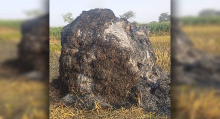 Pathariya. A huge fire broke out in the barns of five different farmers in Gangdwari of Parsada village of Mungeli district today. Paddy worth lakhs of rupees was burnt to ashes in this accident. According to the information, the farmers had stored the paddy harvested from the fields in the barns. Then due to unknown reasons, the barns caught fire, which quickly engulfed the entire area.