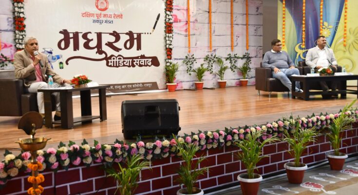 Raipur. Madhuram media dialogue was organized for the first time on 13 December in South East Central Railway Raipur Railway Division. Divisional Railway Manager Sanjeev Kumar was the chief guest in this Madhuram media dialogue. On this occasion, Senior Divisional Commercial Manager Awadhesh Kumar Trivedi informed the media about the achievements of Raipur Railway Division through slides.