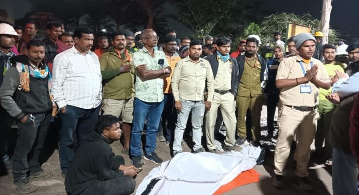 , Balodabazar. The continuous accidents happening at the Shri Cement factory located at Khapardih in the district are raising questions about the safety arrangements there. The employees seem to be scared of the continuous accidents and deaths. Today, a driver died in an accident at Shri Cement, after which the angry Drivers’ Union is demanding compensation by keeping the body of the deceased outside the factory.