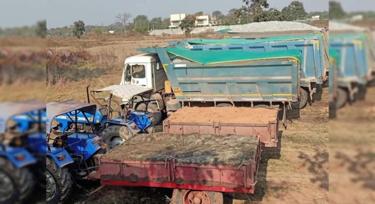 Bilaspur. Continuous action is being taken against illegal excavation and transportation of minerals in the district. In this series, recently, during investigation in Dhobghat, Chhatauna, Ratkhandi and Domuhani areas, Mineral Department Bilaspur has seized 8 tractors while taking action on 8 cases of illegal sand transportation. Apart from this, on 16th February, Mineral officials have seized 1 JCB and 4 tractors which were doing illegal mud excavation in village Kaimadih (Sipat).