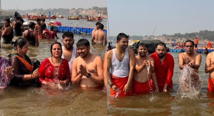 . . Raipur. Newly elected Mayor of Raipur Corporation Meenal Chaubey and more than 40 councillors took a holy dip in Prayagraj Maha Kumbh. Before starting a new innings, they took blessings from Mother Ganga. During this, MLA Rajesh Munat also took a dip in the Kumbh and prayed for the prosperity of the