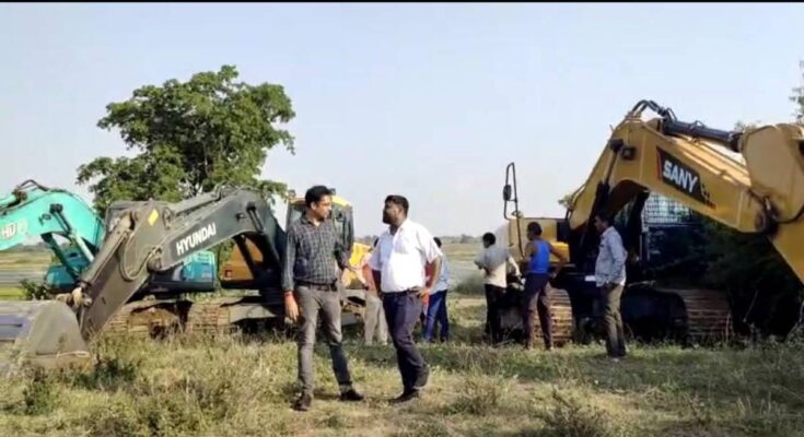 Today on Friday afternoon, Mineral Department officials along with Revenue arrived for surprise inspection and took action. Let us tell you that for a long time, black business of illegal sand excavation is going on in Tila including village Champaran, Semra of Abhanpur area. But even after getting the information, the departmental officials had not taken any action till now.