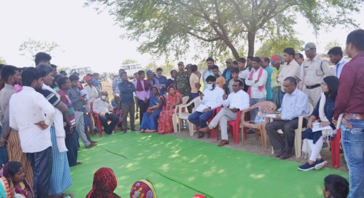 Mungeli 02 March 2021. Collector . S. Elma, during his visit today , reached the village Khaiha of Mungeli, the development block of the district, and by putting a chaupal in the cantonment of Babool, he got information from the villagers about the welfare schemes run by the state government. On the occasion, Collector Mr. Elma said that many public welfare schemes are being run by the state government for the upliftment of the villagers. He talked about taking benefits of government schemes and adding them to the mainstream of development. ChaupalHe informed the villagers about the Rajiv Gandhi Kisan Nyaya Yojana and said that last year, the farmers have been given bonus amount in three installments for selling paddy in the Paddy Procurement Centers. There is talk of early payment of the last installment. On this occasion he availability of food at fixed prices under the chief food aid plan to the villagers , the road to the village , electricity , drinking water ,Information was also received regarding school buildings etc. In the same context, he said that in relation to the Godhan Nyaya Yojana under Suraji village scheme, cow dung is being purchased at a rate of two rupees per kg through Gothan from cattle rearers. Vermi compost fertilizer is being manufactured by the women of self-help groups from cow dung and the product manufactured by them is being purchased at a fixed rate. For this, they increase women’s self-help groups – to take active part elsewhere. On this occasion, women of self-help groups demanded fish farming in the lake located in the village and installation of solar irrigation pumps under the Solar Sujala Yojana. The Collector took their demands seriously and assured them to take necessary action. On this occasion, Chief Executive Officer of District Panchayat, Mr. Rohit Beas ,A large number of rural people were present including Mr. DK Beauhar , Deputy Director of Agriculture Department, Mr. ML Mahadeva , Chief Functional Officer of District Panchayat Mungeli and Officer of Fisheries Department.