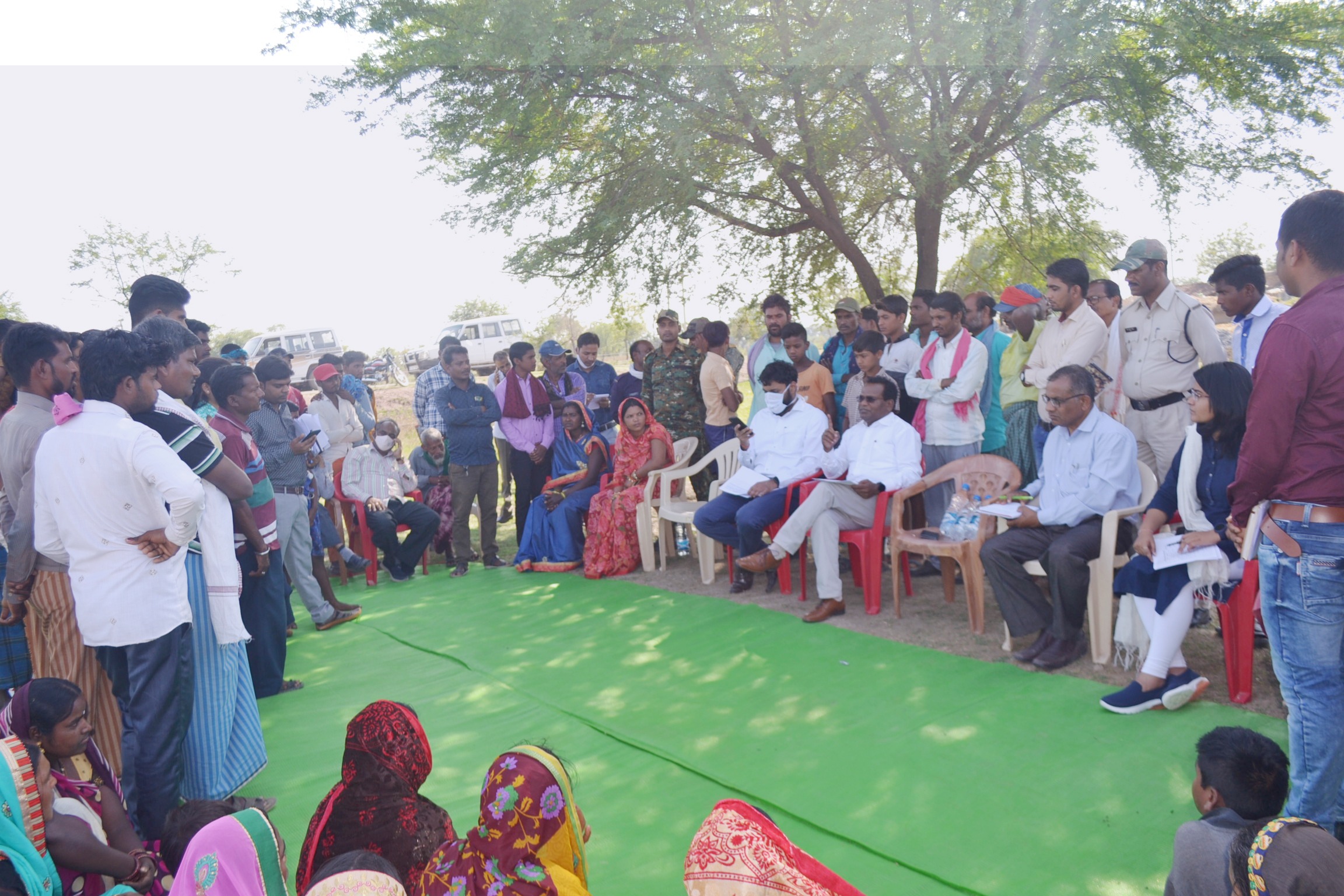 Mungeli: Collector Mr. Elma put Chaupal under the garb of Acacia; Information received from the villagers regarding the welfare schemes run by the state government