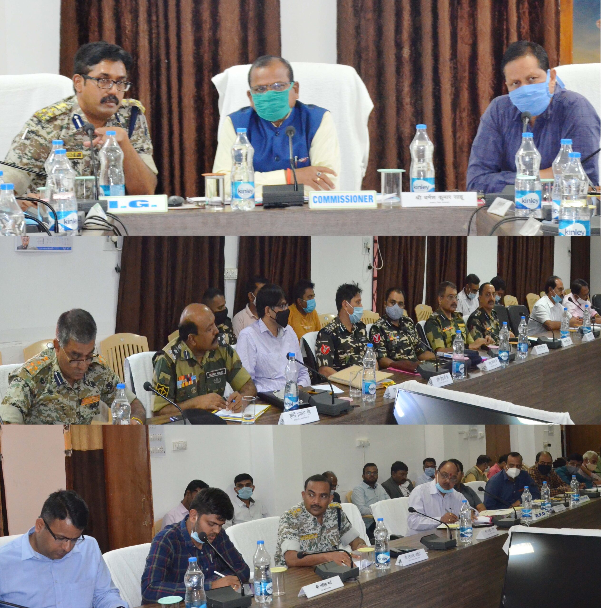 Narayanpur 24 February 2021. Commissioner Mr. G.R. Churendra held a meeting of officials in the meeting hall of Narayanpur district office to review and coordinate the work being done for Dalli Rajhara Rawaghat Rail Project and Rawaghat Steel Project. In the meeting, Inspector General of Police Mr. P. Sundararajan , Collector Kanker Mr. Chandan Kumar , Collector Narayanpur Mr. Dharmesh Kumar Sahu , Deputy Inspector General of Police Kanker Range Mr. Vineet Khanna , Superintendent of Police Mr. Kanker Mr. M.R. Ahire , Superintendent of Police Narayanpur Mr. Mohit Garg , General Manager Rawaghat Project , BSP Bhilai Mr. Jayaprakash , Deputy Inspector General SSB , Forest Officer, Narayanpur Mr. N.R. Open ,Forest Officer , Bhanupratappur , Superintending Engineer Public Works Department Kanker , Superintending Engineer PMGSY Kanker , Superintending Engineer Public Health Engineering Department Kanker , Superintending Engineer Water Resources Jagdalpur were present.