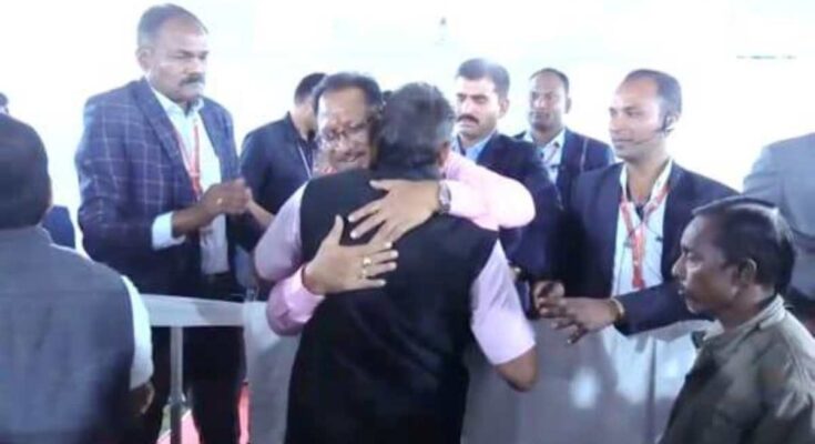 Raipur. The spontaneity and simplicity of Chief Minister Vishnudev Sai’s personality was clearly visible in the State Guest House, Pahuna. When the Chief Minister was meeting people today and accepting their good wishes, suddenly his childhood friend came forward to congratulate him. Suddenly seeing his childhood friend who had come to meet him from Kunkuri, Chief Minister Vishnudev Sai embraced her with great affection and accepted her good wishes.