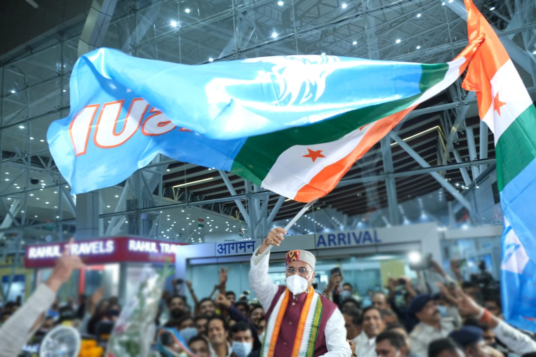 Raipur 20 November 2021. Chief Minister Shri Bhupesh Baghel was given a grand welcome in a festive atmosphere at the Swami Vivekananda Airport in the capital Raipur today. Chhattisgarh received the cleanest state award in the Swachh Amrit Mahotsav by the President Shri Ramnath Kovind and returned to Raipur, a huge crowd was present at the airport to congratulate the Chief Minister Shri Bhupesh Baghel, people warmly recognized Chhattisgarh as the leading clean state of the country. On receiving the honour, he expressed his happiness by welcoming the Chief Minister with drums and drums. Chief Minister Shri Baghel congratulated all the people of the state on this achievement. On this occasion, Parliamentary Secretary and MLA Shri Vikas Upadhyay, MLA Shri Devendra Yadav, Chairman of Civil Supplies Corporation Shri Ram Gopal Agarwal, Chairman of Textbook Corporation Shri Shailesh Nitin Trivedi, Chairman of Khadi and Village Industries Board Shri Rajendra Tiwari,