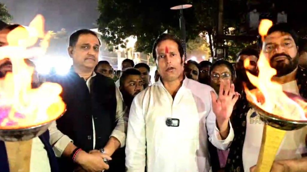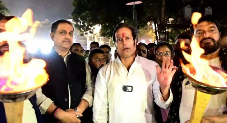 Raipur. After the return of BJP to power in the state, preparations have begun to remove the Youth Hub Chowpatty located in Science College, Raipur. Which is to be shifted to Amanaka. Former MLA Vikas Upadhyay took out a torch rally today in protest against the removal of Chowpatty. A large number of Congress leaders, workers and traders of Chowpatty participated in it.In fact, at the beginning of last year, Raipur Municipal Corporation and Smart City Company had proposed to build a Chowpatty adjacent to the Science College ground on the side of GE Road, which Rajesh Moonat opposed and staged a sit-in for 11 days. Apart from former Chief Minister Dr. Raman Singh, top BJP leaders had also attended the protest and supported Moonat’s movement.