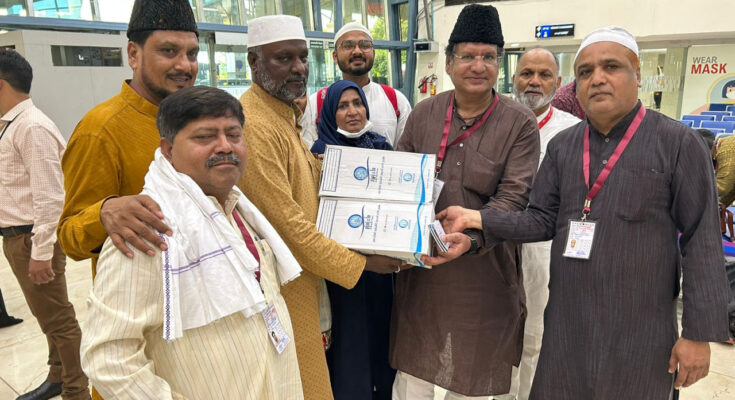 Chhattisgarh State Haj Committee Chairman Mohammad Aslam Khan said that the first convoy of Haj pilgrims from the state reached Nagpur International Airport at 15.50 pm today by Flynas flight number XY-7610. 172 male and 154 female Haj pilgrims are included in the convoy of 326 Haj pilgrims who returned after completing Haj pilgrimage. In which 5 Hajis returned from District Bastar, 52 from Bilaspur, 99 from Durg, 1 from Korea, 146 from Raipur, 6 from Baloda Bazar, 5 from Bemetara, 8 from Balod, 4 from Balrampur district. He told that on the return of the Haj pilgrims, 5 liters of Zam-Zam was made available to each Haj pilgrim after their luggage at the airport. The Hajis were warmly received at the airport by the State Haj Committee. All the Hajis expressed gratitude for the better arrangements made by the State Haj Committee. State Haj Committee Chairman Mohammad Aslam Khan, especially RDA Vice President Shiv Singh Thakur, on the occasion. Haj Committee Executive Officer / Secretary Sajid Memon, Haj Committee members Qari Ashfaq Anjum, Shamim Akhtar, Haji Abdul Razzaq Khan, Mohammad Imran, Akbar Baxi. Mohammad Riaz .Abdul Aslam. Mohd. Tanveer, Mohd. Yusuf and all the employees of the State Haj Committee were present.