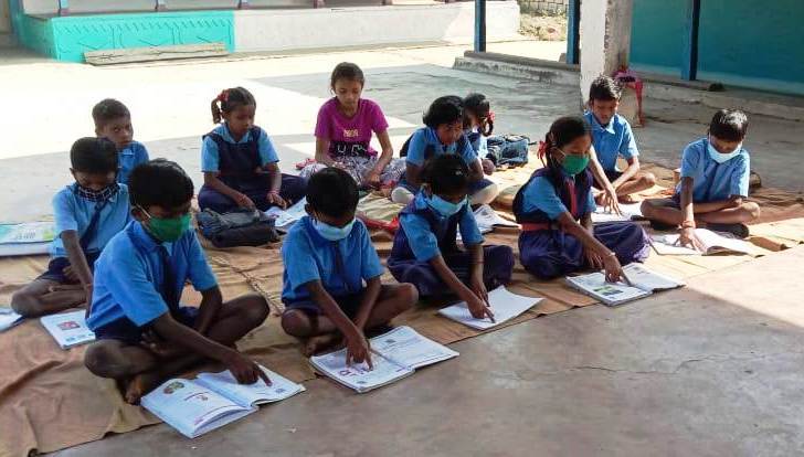 Village Kodegaon (R) at Akladongri Sankalp Center is surrounded by dense forest and high mountains and valleys. Due to lack of mobile network in this village, it is not possible to take online class. In such a situation, the parents and teachers together found a way for the children to continue their studies and handed over the responsibility to the educated parents of the village. Conducted Volunteer of educated village people and conducted offline class continuously, in which Shri Hemant Taram, Bhavani Shorey, Yashoda Netam, Santoshi Netam, Tulsi Shorey, Chetan Korram, Hema Sevata taught children subject wise and took educational activities and conducted educational activities Got it done.
