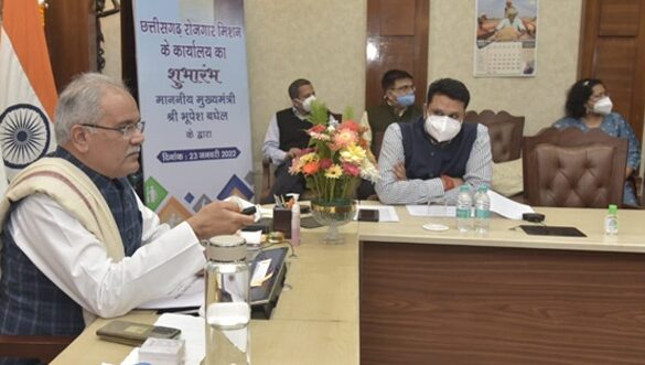 The Chief Minister inaugurated the state level office of Chhattisgarh Employment Mission in the capital Raipur through video conferencing on the occasion of Netaji Subhash Chandra Bose’s birth anniversary. At the beginning of the program, Chief Minister Shri Baghel paid homage to Netaji Subhas Chandra Bose by paying floral tributes to him. On this occasion, Higher Education, Sports and Youth Welfare Minister and Working President of Chhattisgarh Employment Mission Mr. Umesh Patel, Chief Secretary and Vice-Chairman of Chhattisgarh Employment Mission Mr. Amitabh Jain were present along with senior officials.
