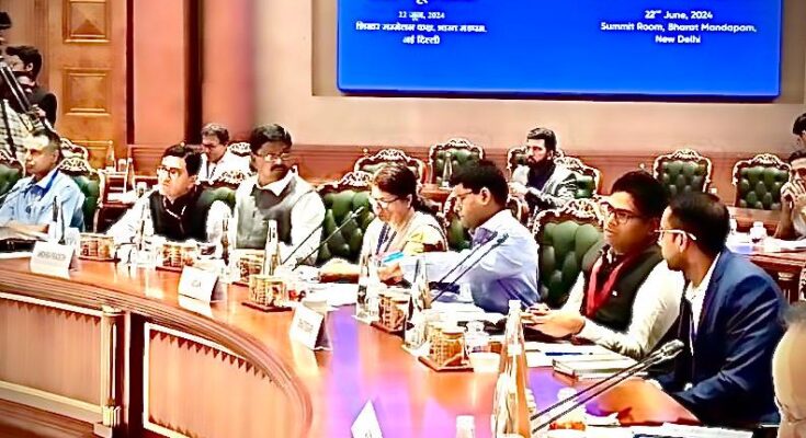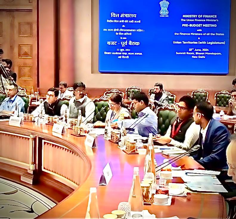 In the pre-budget meeting held in New Delhi, Finance Minister Mr. OP Choudhary gave important suggestions regarding Chhattisgarh’s development plans as per the wishes of Chief Minister Mr. Vishnu Dev Sai. He put forward many important proposals and suggestions in the interest of the state, including the amount of special assistance to the states, development of State Capital Region and expansion of rail network in the state. Union Finance Minister Mrs. Nirmala Sitharaman, Union Minister of State for Finance Mr. Pankaj Choudhary along with Finance Ministers of other states were present in the pre-budget meeting held at Bharat Mandapam, Pragati Maidan, Delhi.