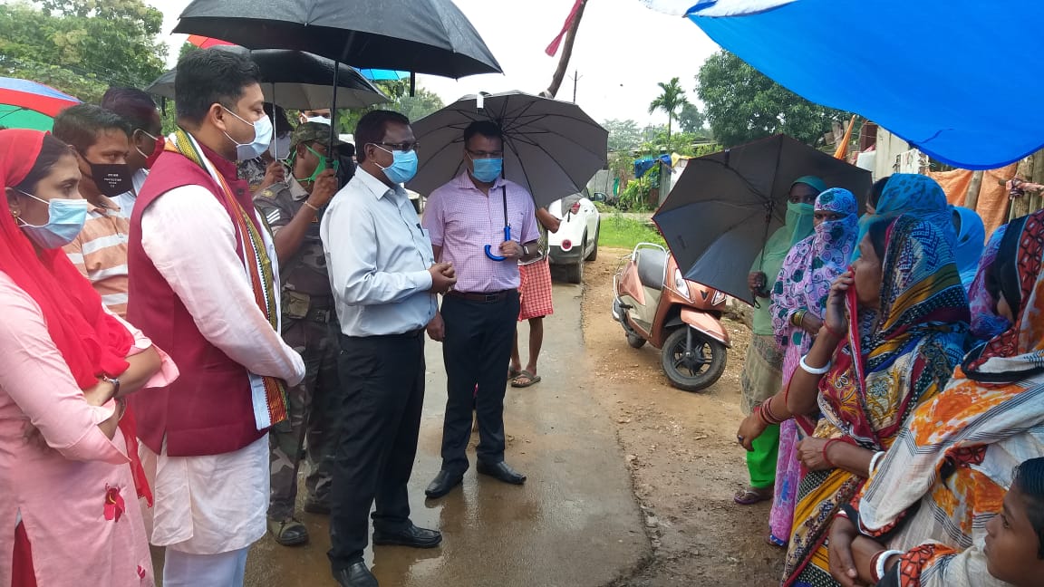 Raipur, 27 August 2020. Bastar Commissioner Shri Amrit Khalkho and IG Shri Sundararaj P. arrived on Thursday to visit the flood affected areas of Sukma District Headquarters. He reviewed the flood affected area in Jhapra, Kumharras, NH 30 bypass and ward number 13 Shabari Nagar and discussed the situation with the affected people. During this, Collector Shri Chandan Kumar, Superintendent of Police Shri Shalabh Sinha and other officers were also with him. Commissioner of Sukma Municipality, Mr. Raju Sahu and Vice-President Mrs. Ayesha Hussain, in front of the Commissioner and IG, reached to meet the flood affected people in Shabri Nagar, situated on Shabri coast, Commissioner of demand letter for making retaining wall in ward numbers 3, 6, 11, 12 and 13 Handed over to him, on which he said to approve soon. During this period, the flood affected people of Shabri Nagar praised the work of the district and urban administration. The affected said that during the flood, all possible help was provided by Collector Chandan Kumar and his team, better arrangements were made in the relief camp. After this, the commissioner and IG reached the Kovid Center (Nava Abhiyan) in the Kumharras area of Sukma and discussed with the center in-charge. Information is being taken about the efforts being made to prevent Kovid infection in the center.