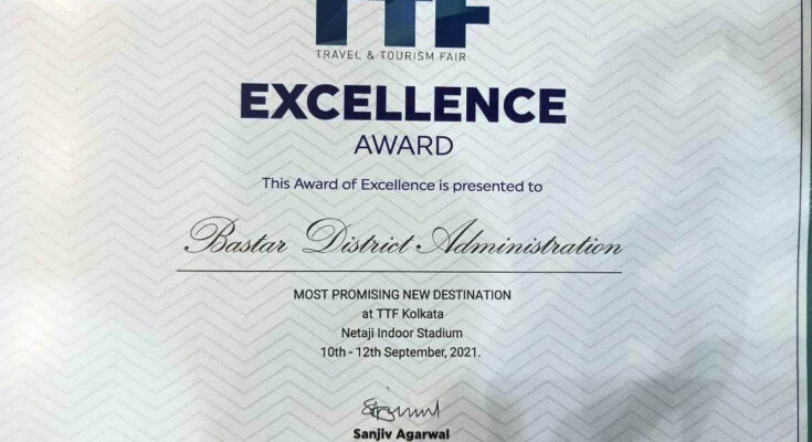 Raipur 12 September 2021. Bastar was honored with ‘The Most Promising New Destination’ award at the country’s largest tourism trade fair. The award was received by tourism delegation led by Assistant Collector of Bastar Ms. Suruchi Singh at the Tourism Fair held in Kolkata today. Chief Minister Bhupesh Baghel and Tourism Minister Tamradhwaj Sahu have congratulated and congratulated all the officials of the Tourism Department and District Administration Bastar for this.